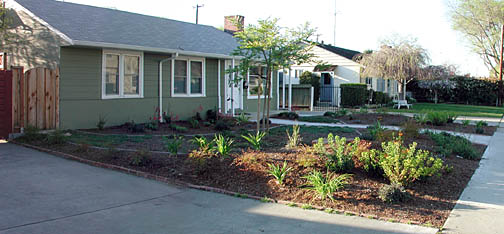 California | | | | After removing a diseased hedge and replacing the back fence, the owners needed new landscaping to replace the hedge. Plants were chosen based on size, neatness, color, and in some cases, fragrance. |