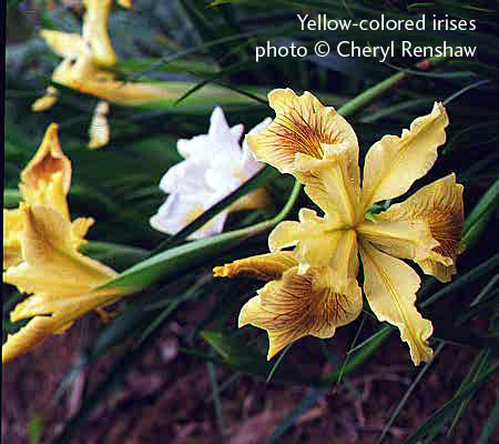Many Pacific Coast iris hybrids are available that haven't been given a name. This is a subset of the nameless irises I've grown; these all have yellow, orange, or apricot flowers.