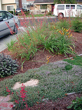 California | | | | After removing a diseased hedge and replacing the back fence, the owners needed new landscaping to replace the hedge. Plants were chosen based on size, neatness, color, and in some cases, fragrance. |